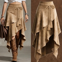Fashion High-Rise Ruffle Irregular Hemline Skirt-without Belt