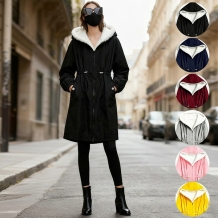 Fashion Hooded Long Sleeve Drawstring Waist Side Pockets Warm Plush Lined Jacket