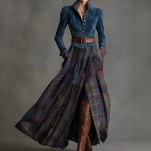 Vintage V-neck Long Sleeve Front Button Side Pockets Tassel Hemline Dress
