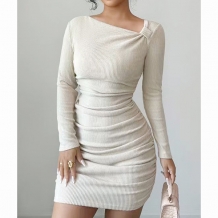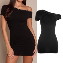 Sexy Off-shoulder Boat Neck Short Sleeve Slit Hem Dress
