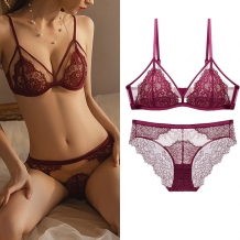 Fashion Hollow Out Gauze Spliced Floral Embroidered Semi-through Lace Two-piece Lingerie Set