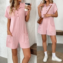 Fashion Solid Color Long Sleeve POLO Collar High Waist Jumpsuit
