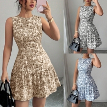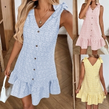 Sexy V-neck Sleeveless Solid Color Slim Fit Dress