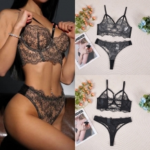 Fashion Howllowout Bowknot Ruffle Lace Two-piece Lingerie Set