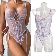 Sexy Lace Spliced Cross-criss Lingerie Bodysuit