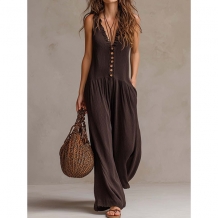 Fashion Ruffle V-neck Sleeveless Wide-leg Texture Jumpsuit