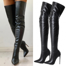 Sexy High-heeled Pointed-toe Back-zipper Over-the-knee Boots