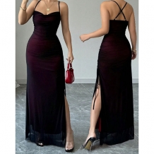 Women's Sexy Ruched Bodycon Maxi Dress - Spaghetti Strap Backless Side Slit Party Gown