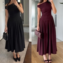 Women's Elegant Asymmetrical Neck Drop Waist Midi Dress
