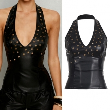 Sexy Backless Lace-up Lace Spliced PU Leather Corsets