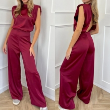 Fashion Beaded Square Neck Sleeveless High-rise Straight-cut Jumpsuit