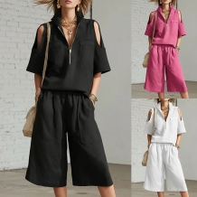 Fashion Two-piece Set Consist of Sweetheart Neckline Crop Top and Wide-leg Pants