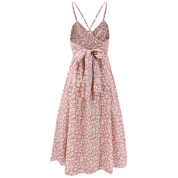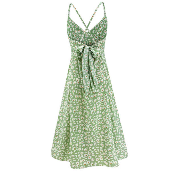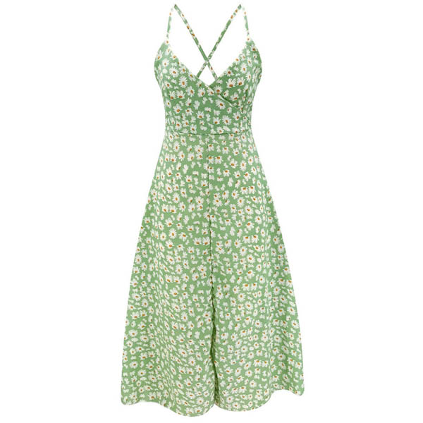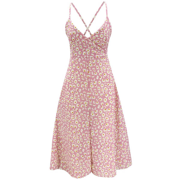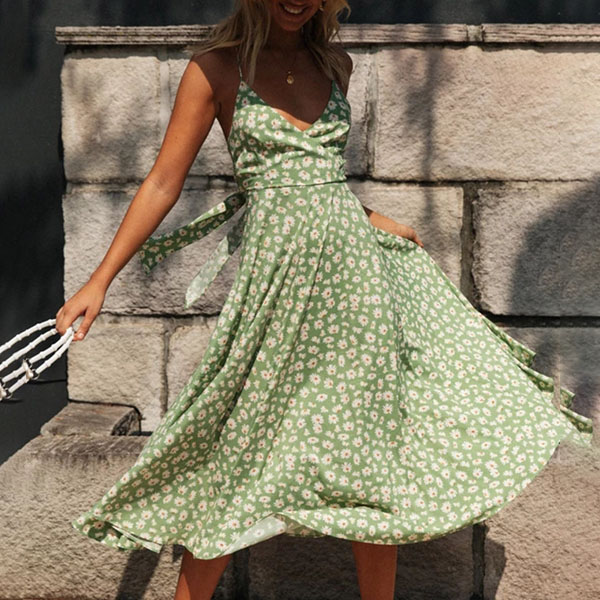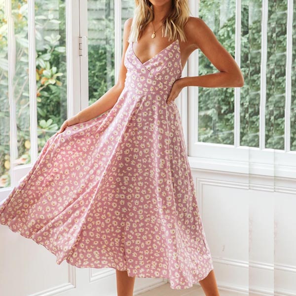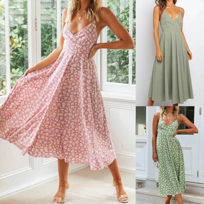 For these sun-soaked summer days,when you wanna head to the seaside,you can just slip into this dress to have a beautiful and charming beach look. Sling style,with backless and v-neck design,sexy yet alluring. Its vibrant floral print details can make this piece look more eye-catching. Matching with the bohemian style sandals and straw hat would make you look more perfect!