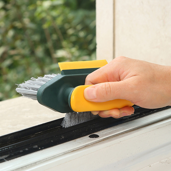 2-in-1 Grout Brush and Scraper, V-Shaped Crevice Cleaning Brush with Stiff Bristles for Tile Floors, Bathroom Showers, and Window Tracks