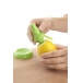 center from the stem, screw the pointed threaded end down into the fruit, squeeze the