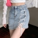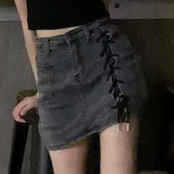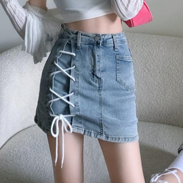 A-Line Denim Mini Skirt with Side Slit and Adjustable Straps