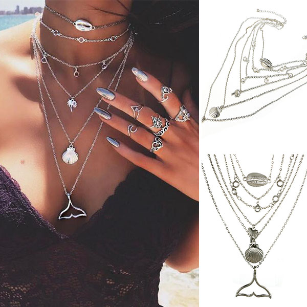 ashion Fishtail Shell Pendant Six-layer Necklace