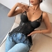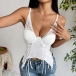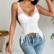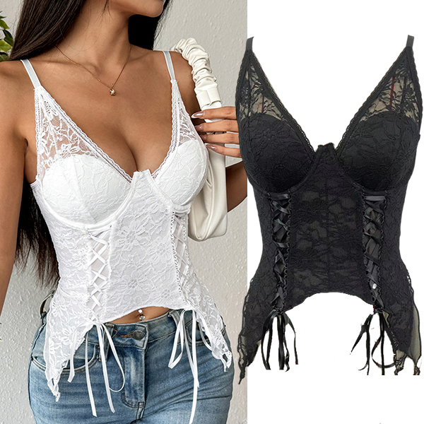 Fashion Floral Jacquard Lace V-neck Push-up Lace-up Irregular Hemline Cami Top