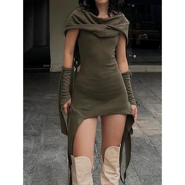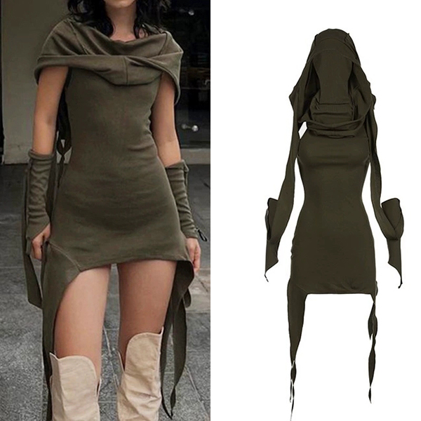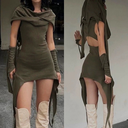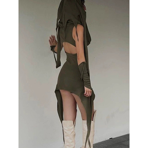 Backless Gothic Dress with Retro Irregular Design