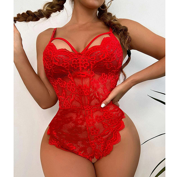 Backless One Piece Pajamas with Lace Suspenders and See Through Design