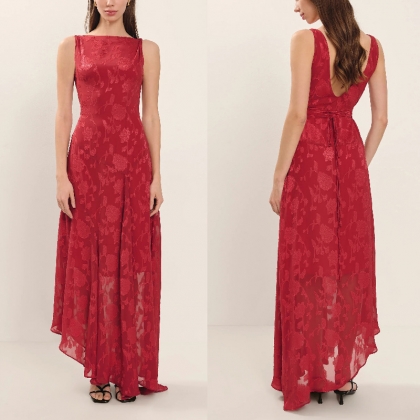 Backless Slim Fit with Jacquard Pattern and Irregular Hem Lace Dress