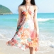 Beach Boho Multicolor Floral Print Halterneck Backless Dress