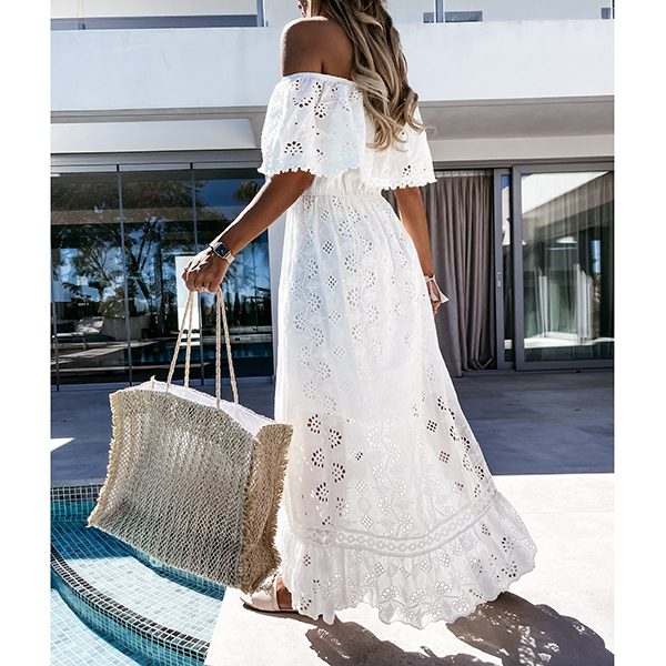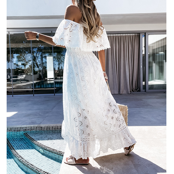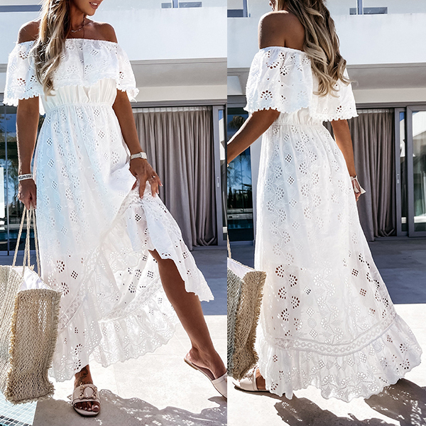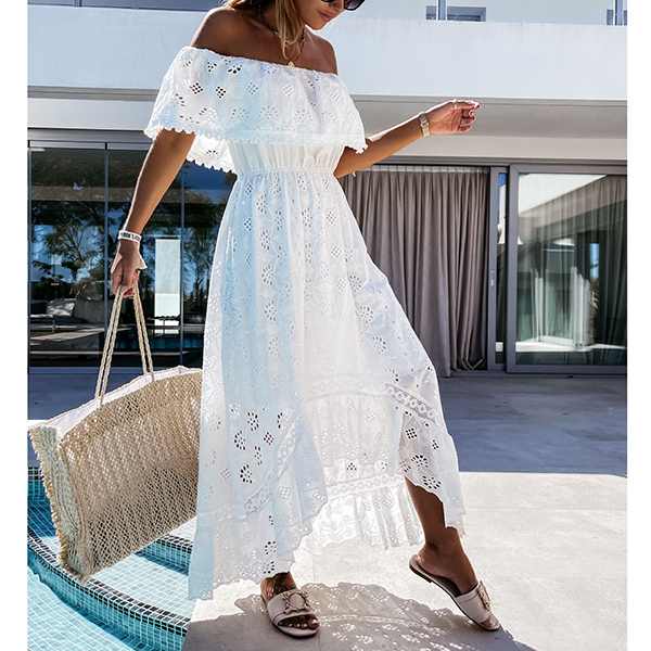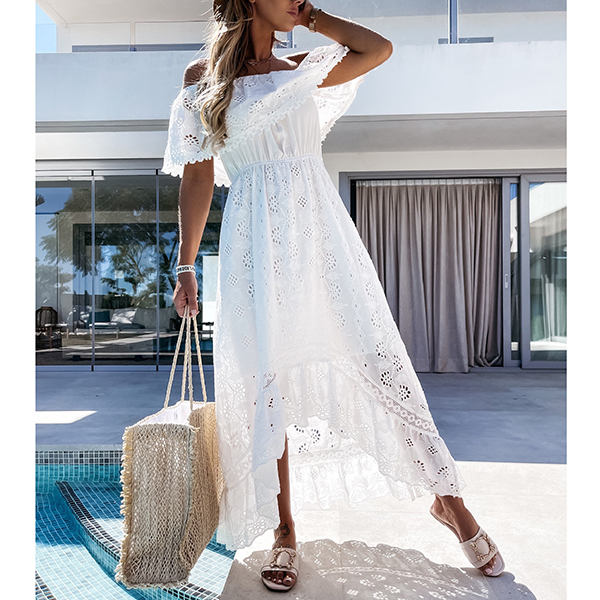 Beach Dress with Lace Long Skirt Detail, Featuring Tube Top or One Shoulder Sexy Design