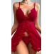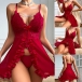 Beautiful Lace Spliced Gauze V-neck Ruffle Slit Two-piece Nightwear Dress