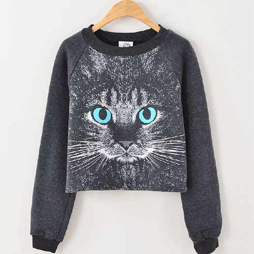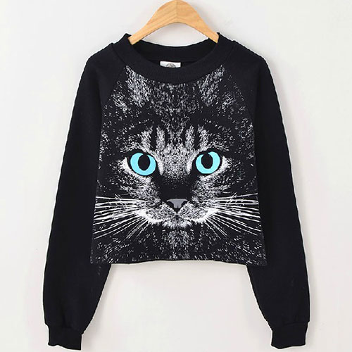Meow, meow, meow! Hear, this sweatshirt is calling you to bring it to home! Featuring the cartoon cat print, it looks leisure and cute. With the high quality material, in it, you will feel very comfy and warm. Like the print? Wanna a leisure and chic sweatshirt to relax yourself? Then how could you miss it?