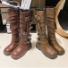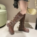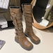 Belt Buckle Thick Heel Boots: Retro Knee-High Western Knight Fashion Boots