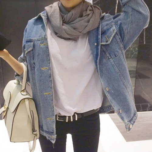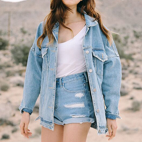 Wow, you are so cool in this denim jacket! BF style, featuring lapel, long sleeve and single-breasted