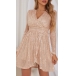 Bling-bling Rhinestone Long Sleeve V-neck High Waist Irregular Hemline Party Dress