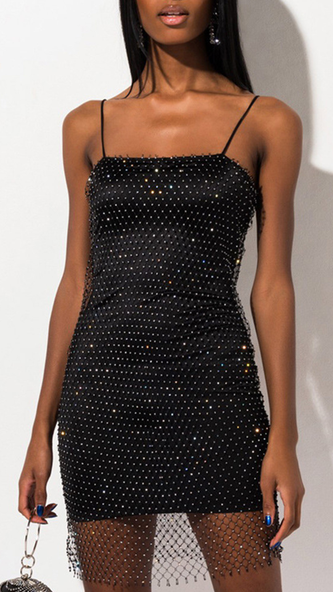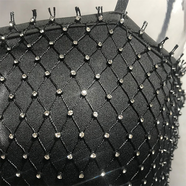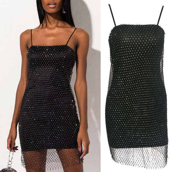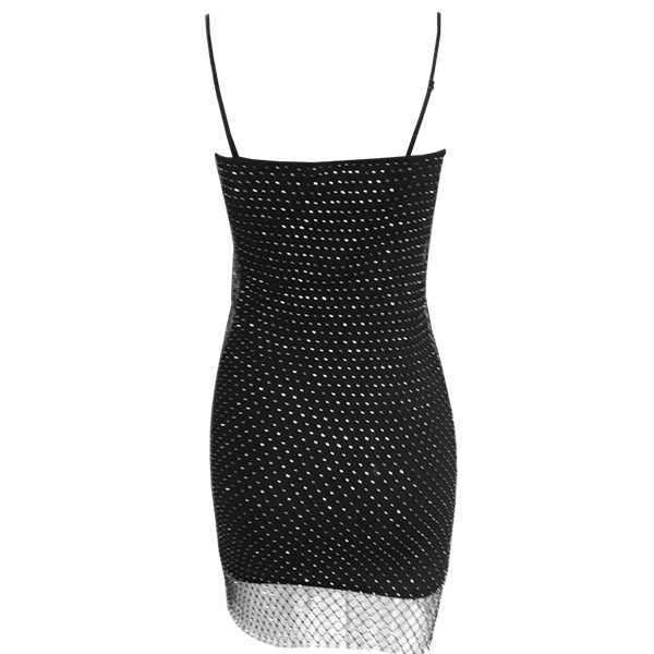 Bling-bling Rhinestone Net Spliced Slip Dress Party Dress