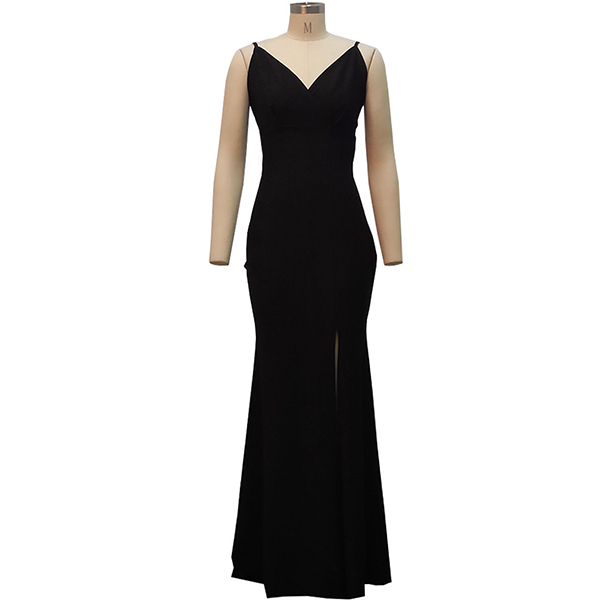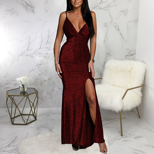 Bling Bling V-neck High Slit Party Dress