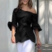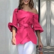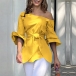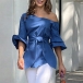 Blue Off-the-Shoulder Floral Top with Waist Tie