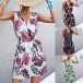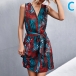 Bohemai Style Floral Printed V-neck Self-tie Mini Dress