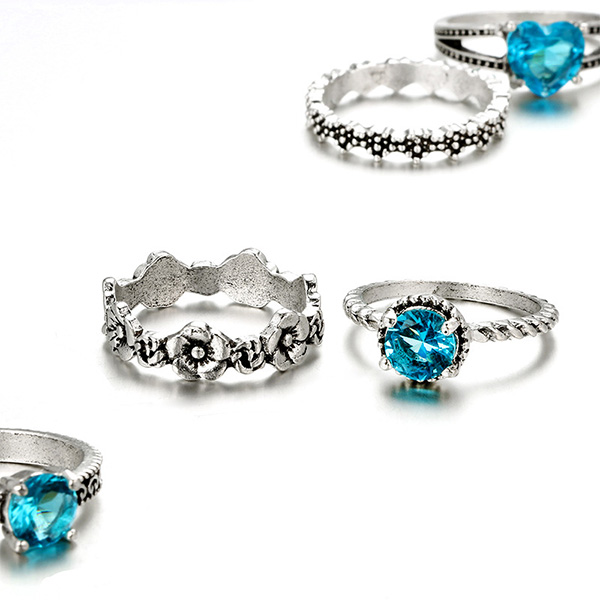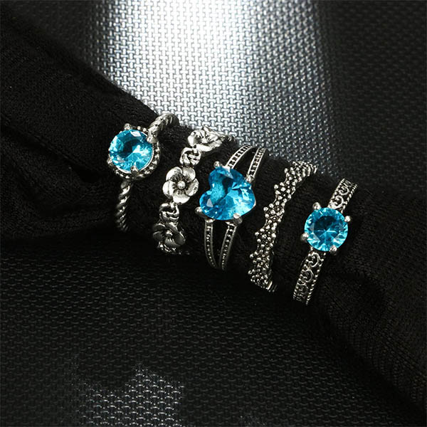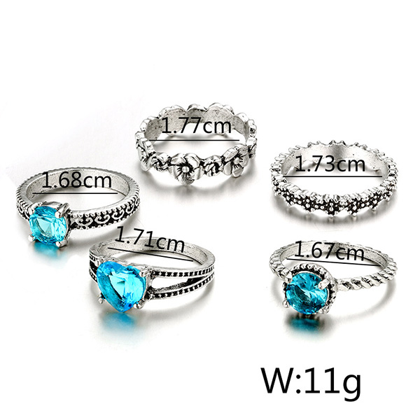 Bohemain Style Rhinestone Inlaid Ring Set 5 pcs/Set