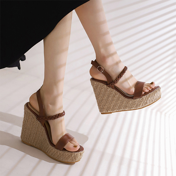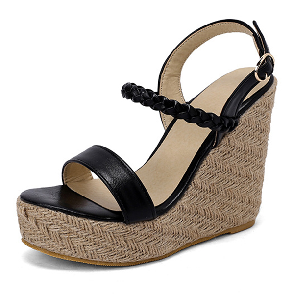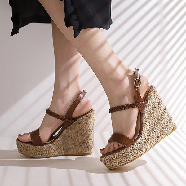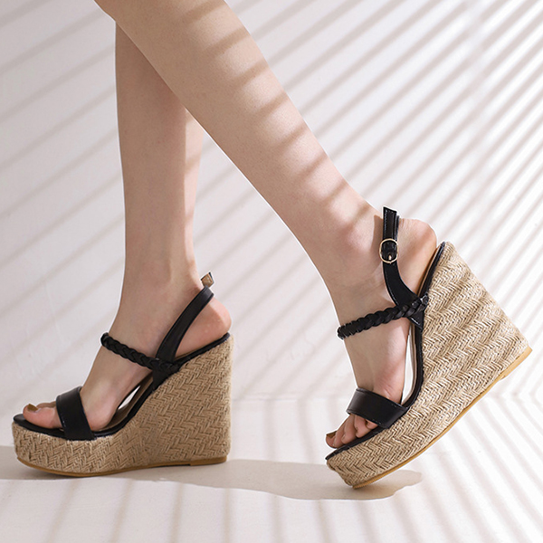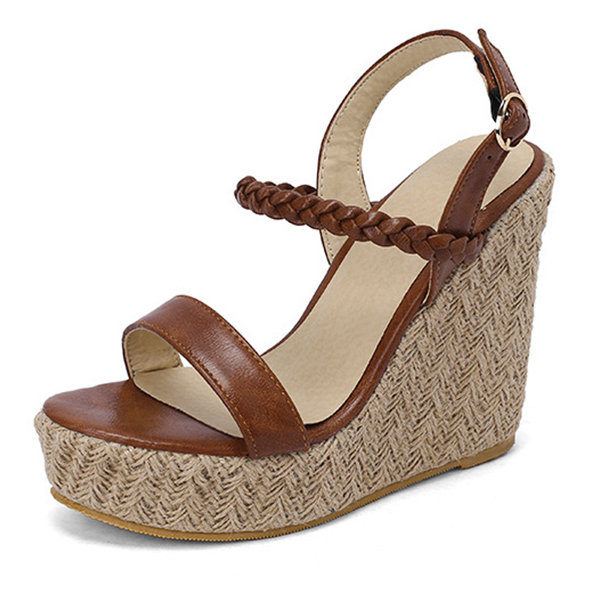 Bohemia Style Braided Open-toe Strappy Platform Wedge Sandals with Buckle