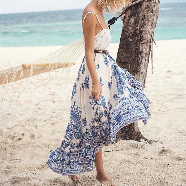 come with self-tie design, a crochet-trim detail, an irregular hemline, a flowing silhouette.
