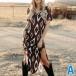 Bohemia Style Diamond Pattern V-neck Short Sleeve Slit Dress