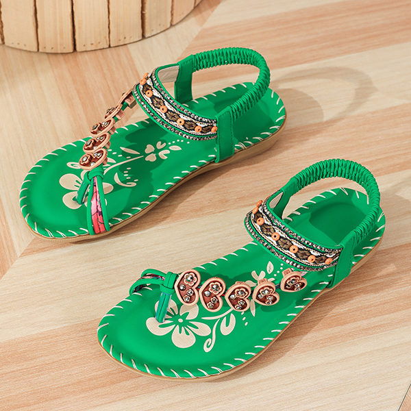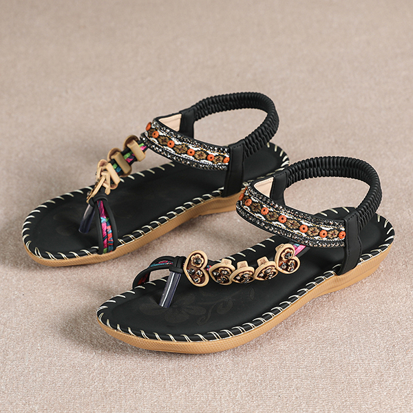 Bohemia Style Floral Beaded Flat Sandals