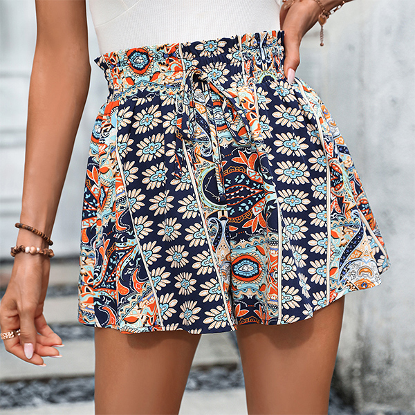 These shorts feature a floral print, creating a laid-back and free-spirited look. Pair them with a flowy blouse and sandals for a boho-chic ensemble!