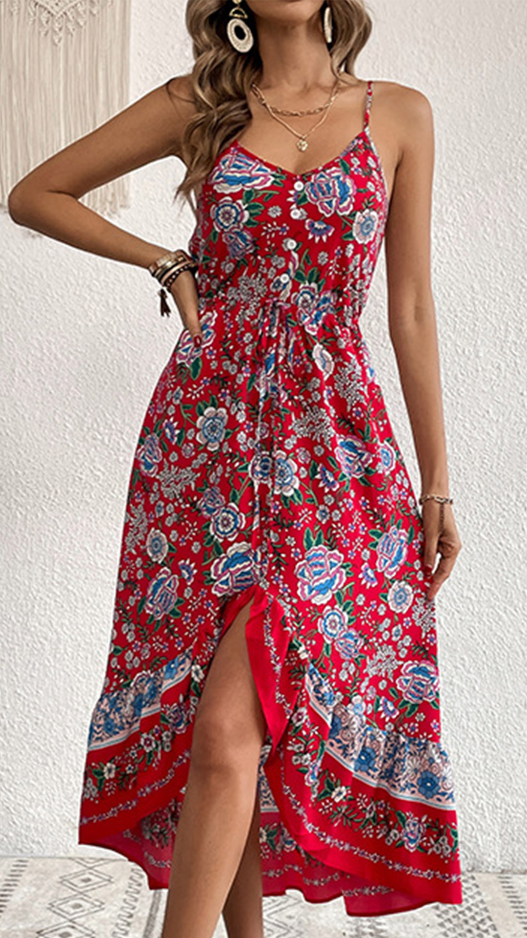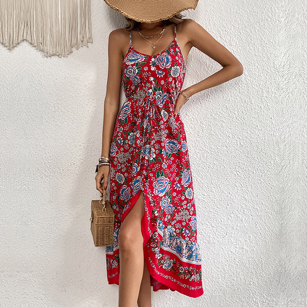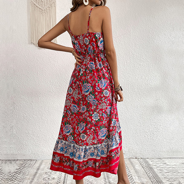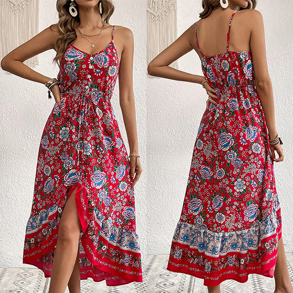 Look at this dress! The bohemian-inspired floral print adds a touch of nature and beauty to the dress, while the irregular hemline adds a unique and playful touch. This dress is perfect for casual occasions, such as beach parties, picnics, and outdoor gatherings.