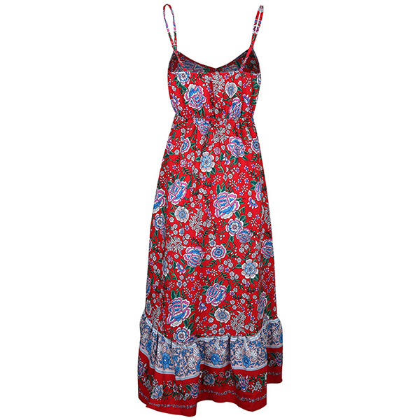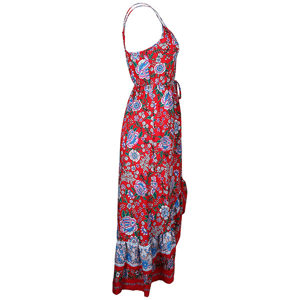 Bohemia Style Floral Printed Irregular Hemline Slip Dress