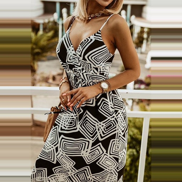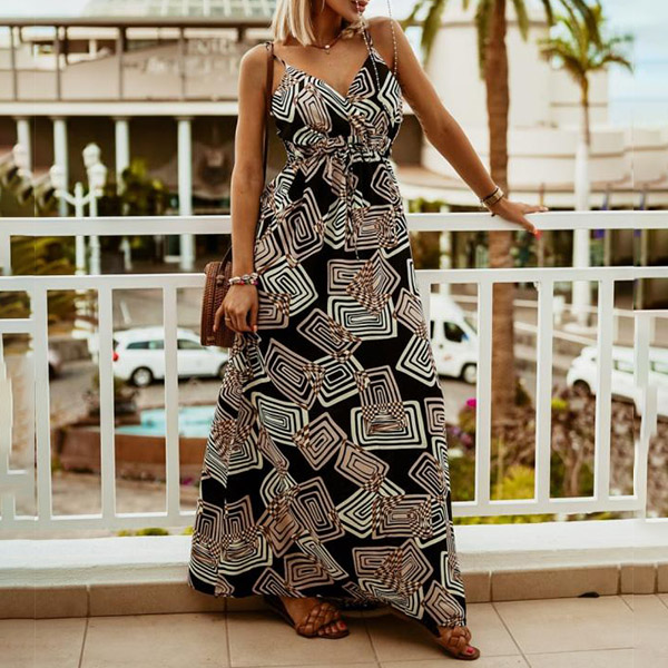 This gorgeous dress is perfect for any summer occasion, whether you're headed to the beach or a backyard barbecue. The flowy silhouette is ultra-flattering, and the colorful print is sure to turn heads.