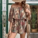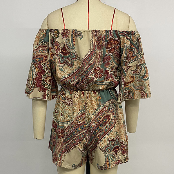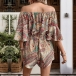 Bohemia Style Floral Printed Off-the-shoulder Self-tie Romper