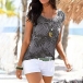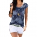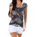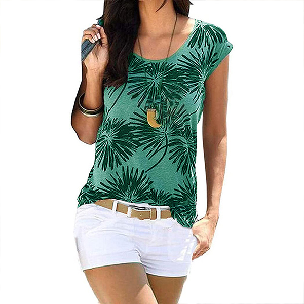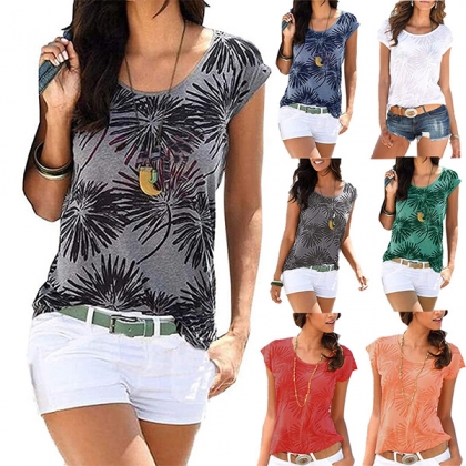 Bohemia Style Floral Printed Round Neck Cap Sleeve Shirt