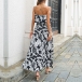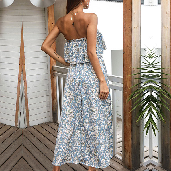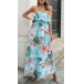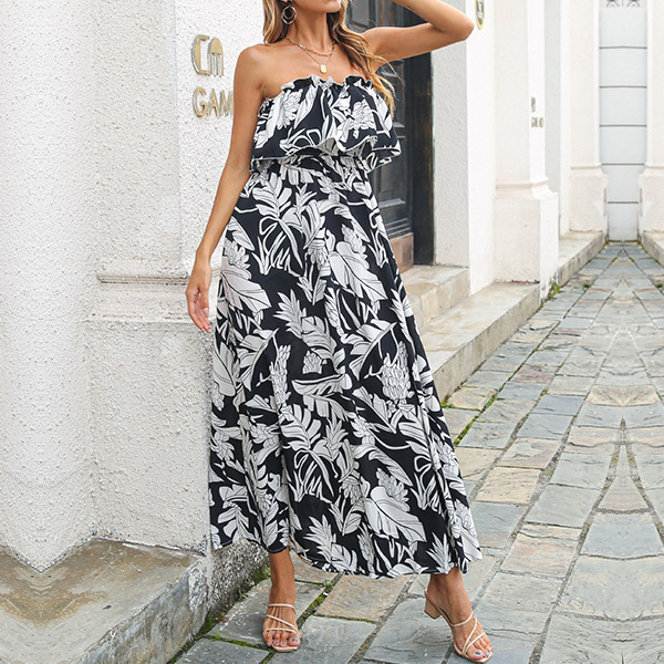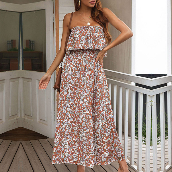 Bohemia Style Floral Printed Ruffled Strapless Maxi Dress