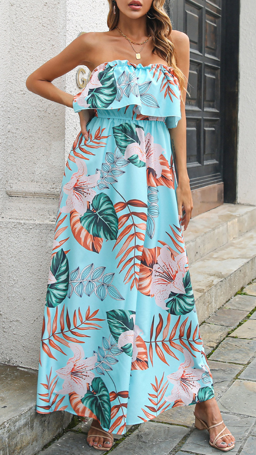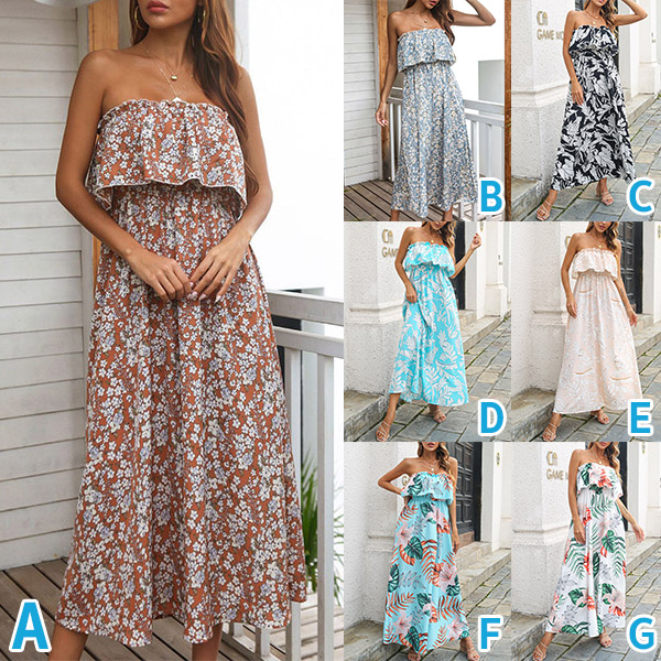 This dress is a perfect blend of comfort and style, making it a must-have for your summer wardrobe. The ruffled strapless design allows you to show off your shoulders and neckline. The floral print adds a bohemian and romantic touch, making you feel like a free-spirited goddess.