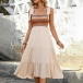 Bohemia Style Floral Printed Self-tie Shoulder Strap High-rise Tiered Dress